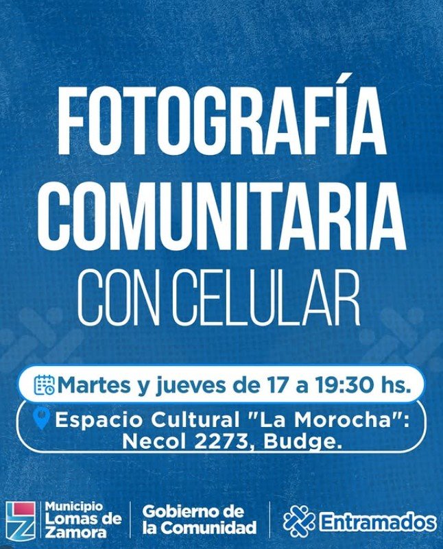 El Municipio de Lomas de Zamora, junto al programa Entramados de la provincia de Buenos Aires, organiza diversas actividades de verano. En Ingeniero Budge, la propuesta es un taller de fotografía con celular que se dicta los martes y jueves, de 17 a 19.30 horas, en el espacio cultural La Morocha, ubicado en Necol 2273. Este taller esta pensado para que cualquier vecino, sin importar su edad, pueda descubrir técnicas y secretos para capturar mejores imágenes de su vida cotidiana, su familia o el barrio.