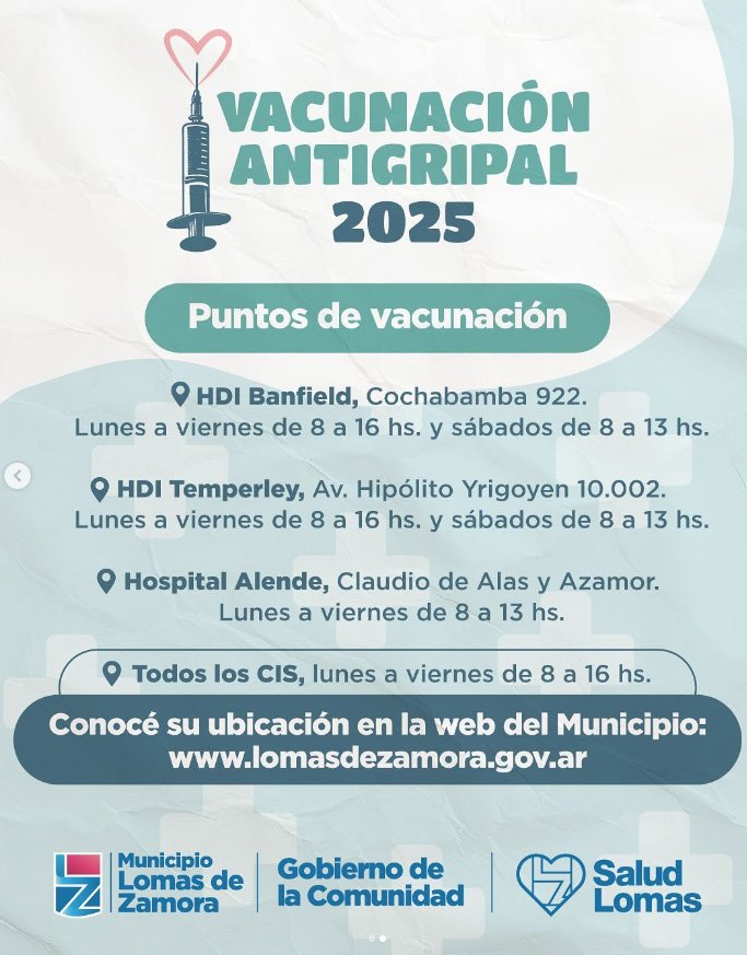 Con la llegada del otoño y la proximidad del invierno, el Municipio de Lomas de Zamora que el próximo 25 de marzo inicia la campaña de vacunación antigripal 2025. La iniciativa busca proteger a los sectores más vulnerables frente a la gripe, comenzando por el personal de salud y las personas mayores de 65 años. Según informaron desde la Secretaría de Salud, la inmunización se desarrollará por etapas hasta alcanzar a todos los grupos de riesgo.